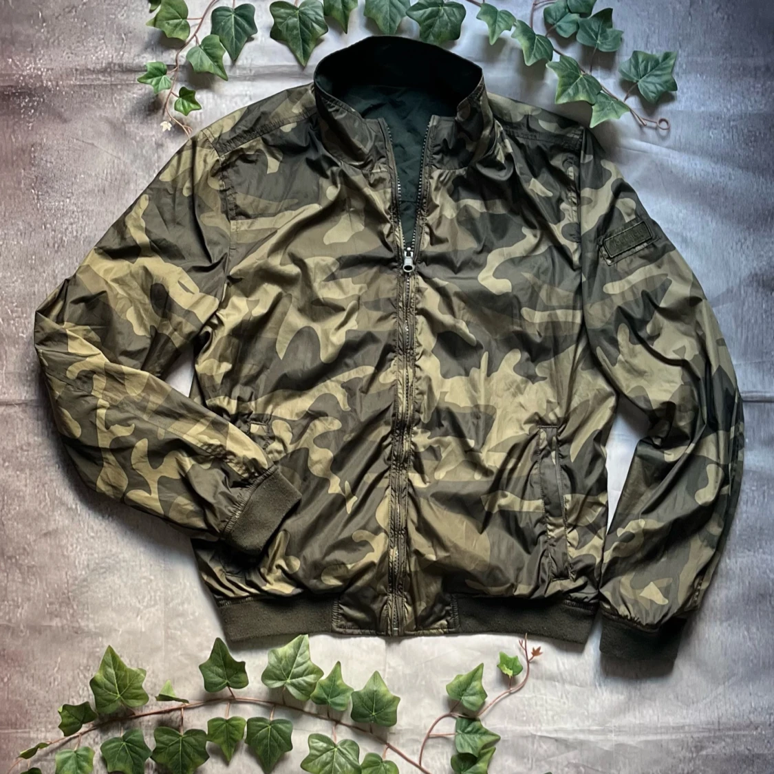 Exklusiv vändbar bomberjacka från Woolrich, där du får två stilar i en – klassisk militärgrön på ena sidan och modern camouflage på den andra. 🎨 Färg: Militärgrön / Camouflage 📏 Storlek: S 📐 Mått: Fråga ifall det önskas! ♻️ Skick: Mycket bra – knappt använd, inga defekter 🧵 Material: Polyamid / Bomull