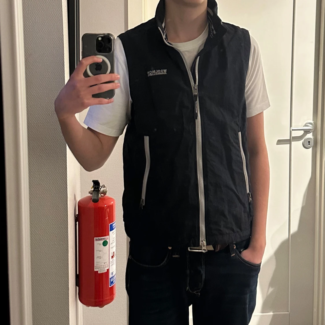Säljer en snygg mörkblå väst från Woolrich med dragkedja och broderad logga på bröstet. Lite tunnare så passar bra till varmare vårdagar. Storleken är s men den passar mer som xs. Skick 8/10 Hör gärna av dig vid frågor!