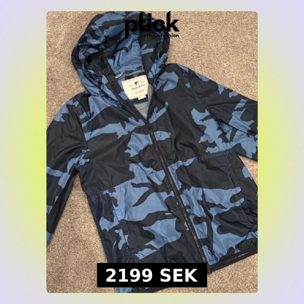 Sjukt snygg och eftertrakad vindjacka från Woolrich i blått och svart camomönster. Storlek M
