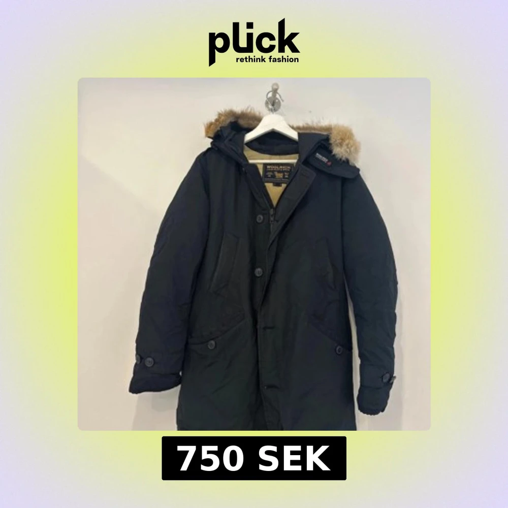 Svart parkas från Woolrich med beige innerfoder och huva med fuskpäls. Jackan har dragkedja och knappar framtill, flera fickor och klassisk längre modell. Perfekt för kalla dagar med sin varma och stilrena design.