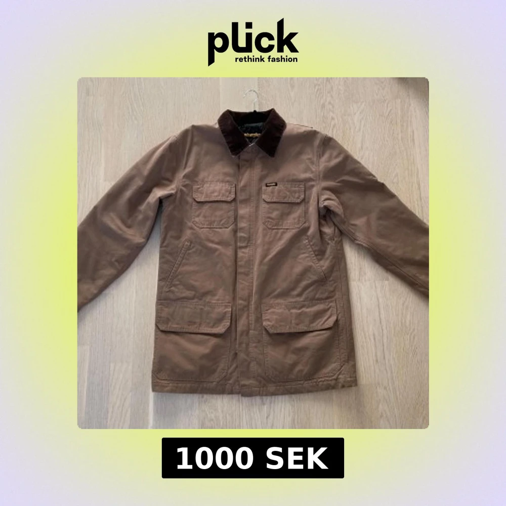 Brun/beige canvas jacka från Wrangler storlek L (lite större i storleken). Varm och bra med förvaring. Liten nästintill osynlig rispa på vänster skuldra (hör av er för fler bilder) Krage i manchester.
