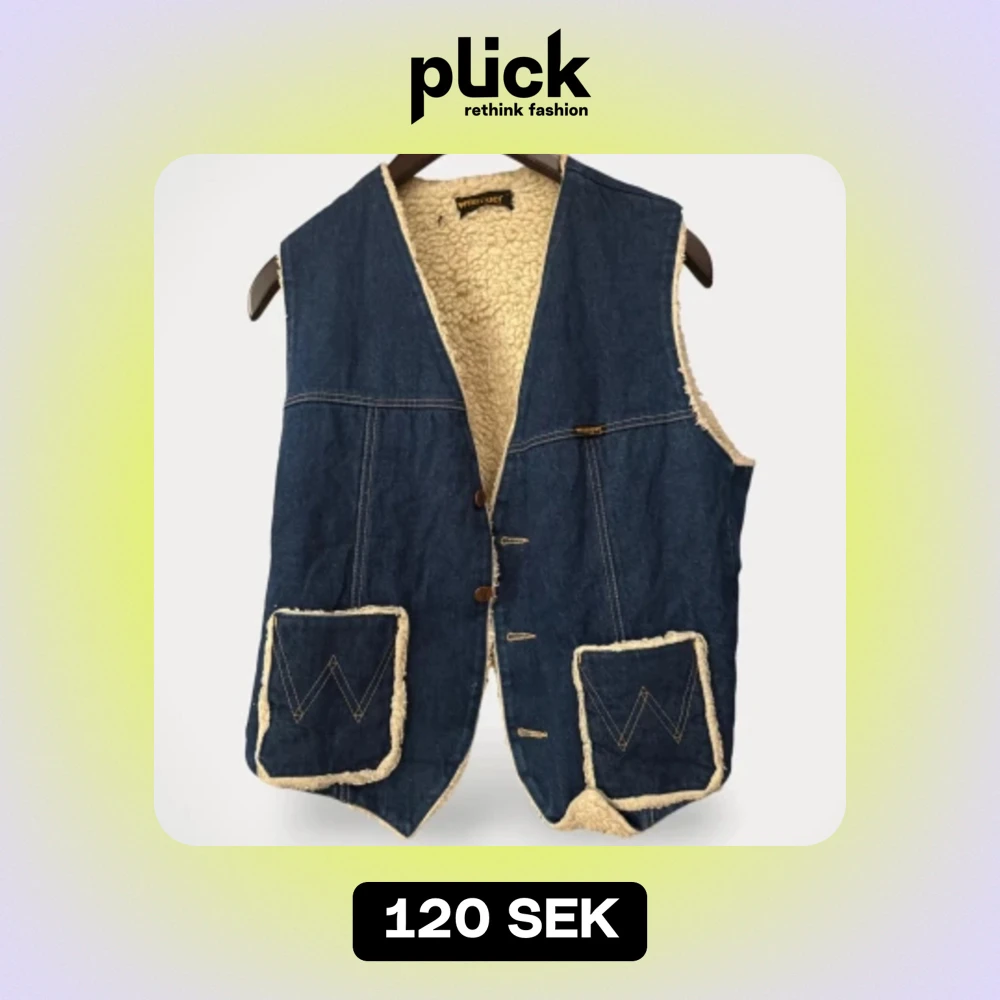 Väst från Wrangler, modell Denim Sherpa. Storlek: s Material: bomull Nypris: 799 SEK Använd, men utan anmärkning.