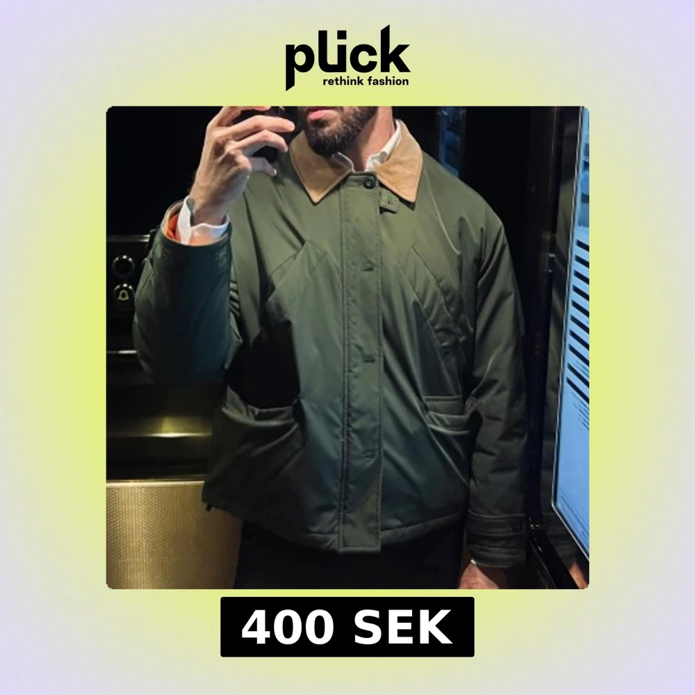 Snygg grön jacka med klassisk krage och knappar framtill. Jackan har en stilren design med långa ärmar och en diskret ficka på sidan. Perfekt för en stilren look.