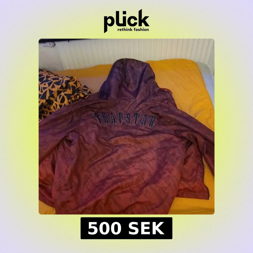 Säljer en fet röd vindjacka från Trapstar i camo-mönster. Jackan har huva med snörning, dragkedja framtill och två fickor med tryckknappar. Trapstar-logga på ryggen och patch på bröstet. Perfekt för dig som vill sticka ut.