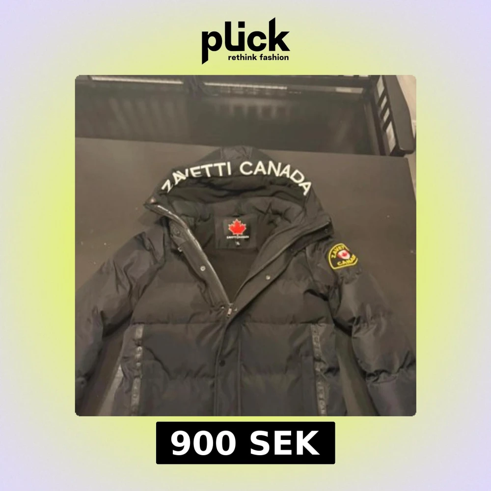 Svart pufferjacka från Zavetti Canada med stor huva och broderad logga på ärmen. Jackan har dragkedja framtill, flera fickor och tydliga logodetaljer både på insidan och utsidan. Perfekt för kalla dagar med sin tjocka vaddering och stilrena look. Jag är 14år och 176 cm lång som använt den🔥