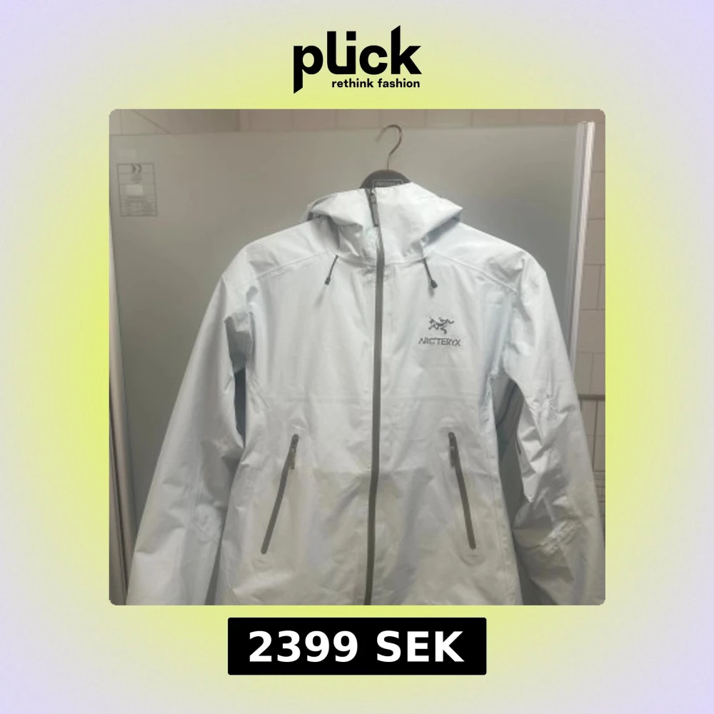 Snygg vit vindjacka från Arc'teryx i storlek XL (men passar som en storlek L). Jackan har huva med snörning, två dragkedjeförsedda fickor och stilren logga på bröstet. Perfekt för dig som gillar outdoor och vill ha en clean look. Materialet är lätt och syntetiskt.