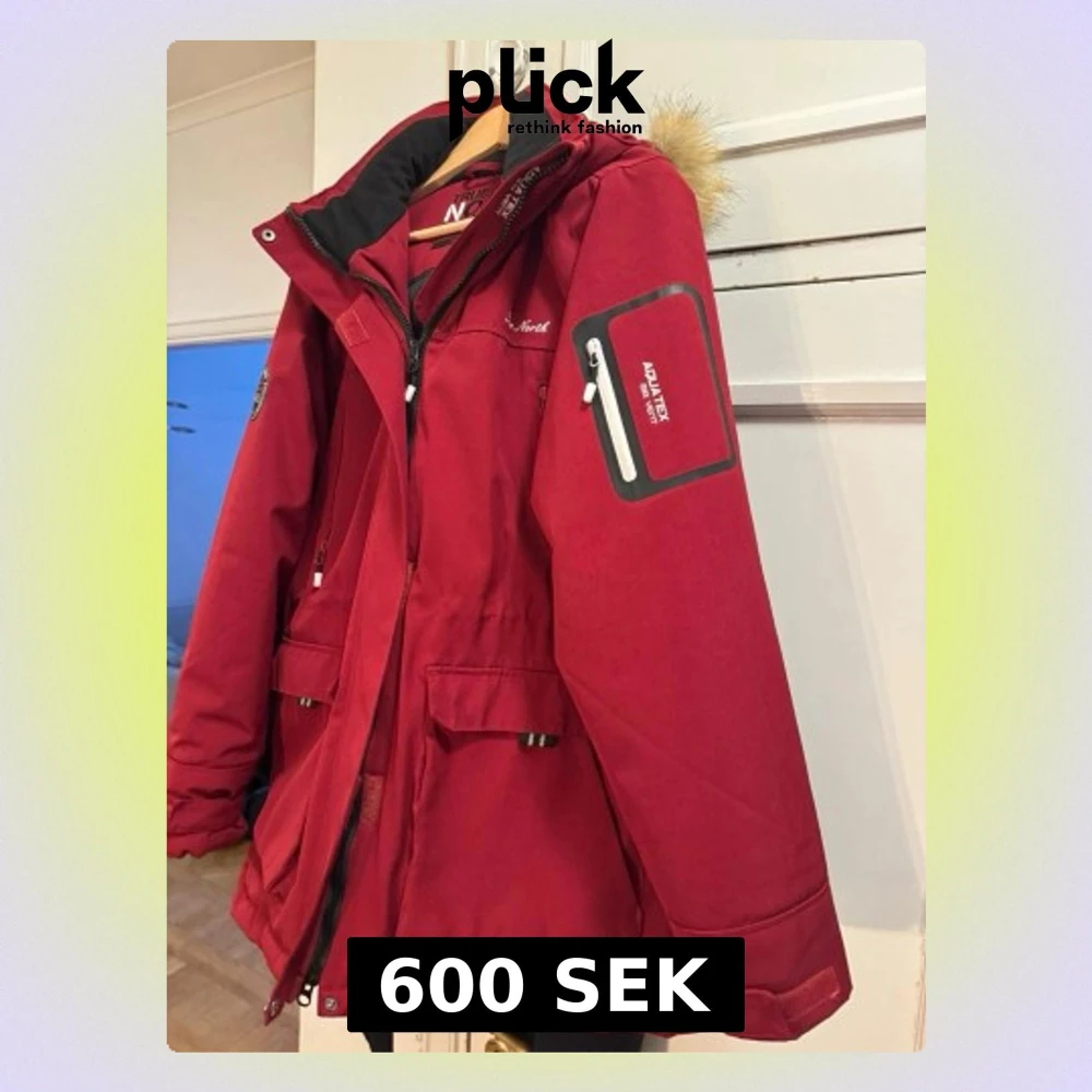 Säljer en röd parkas från True North i storlek XL. Jackan har flera praktiska fickor, dragkedja, huva med fuskpäls och detaljer som patch på ärmen. Materialet är tåligt och fodrat, perfekt för kalla dagar. Använt få gånger