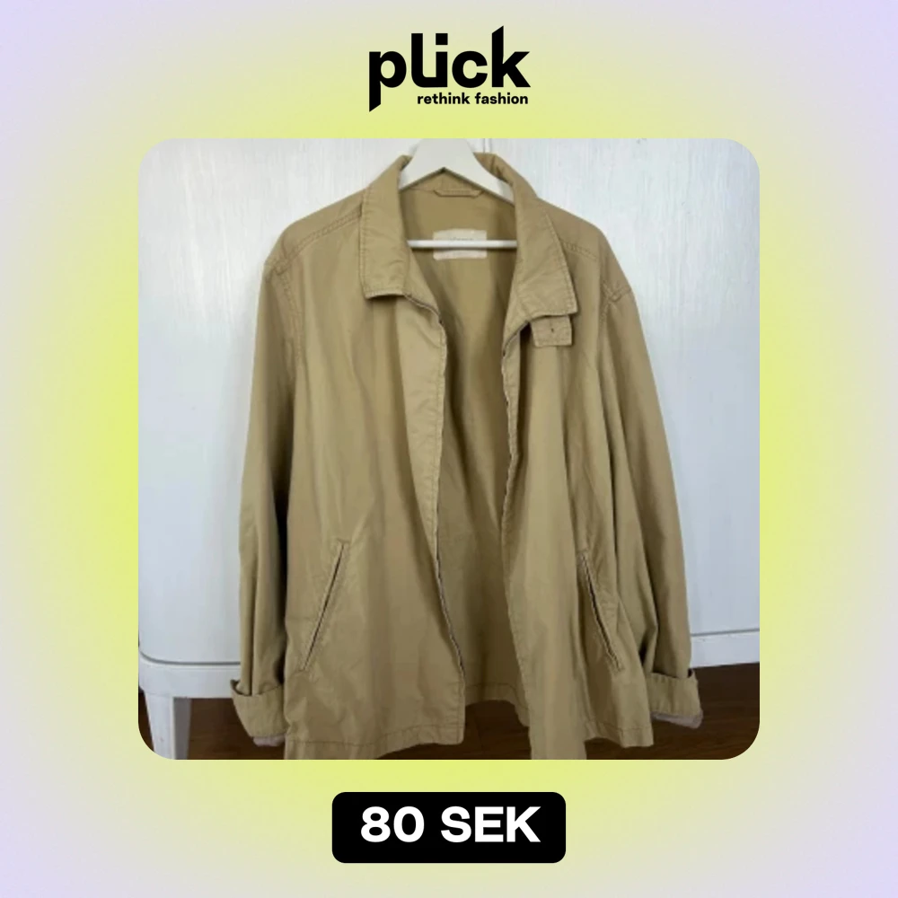 Beige jacka i bra skick. Fickor utan dragkedja i sidan.