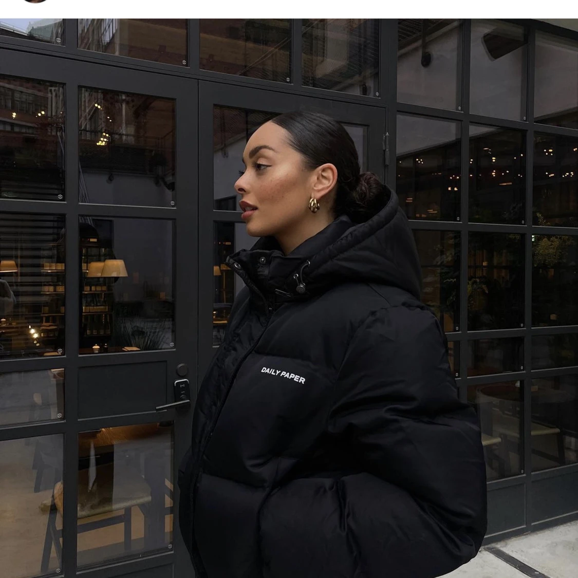 Jacka i strl XL men jag är i vanliga fall xs-s tog en större för mer oversized look men passar även någon som är XL om man vill ha den lite mer tight.