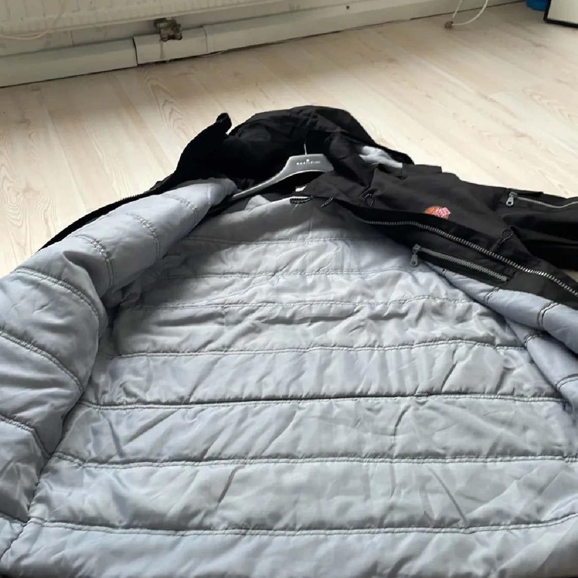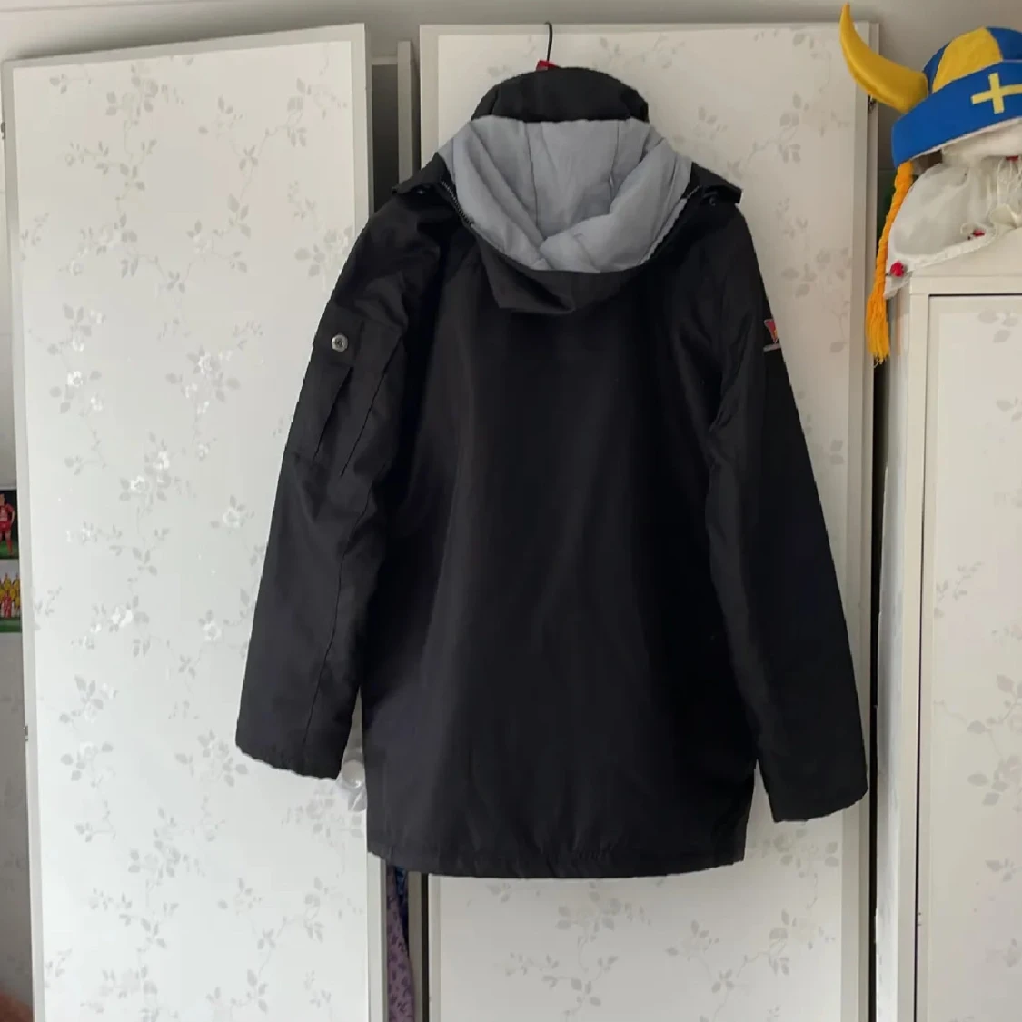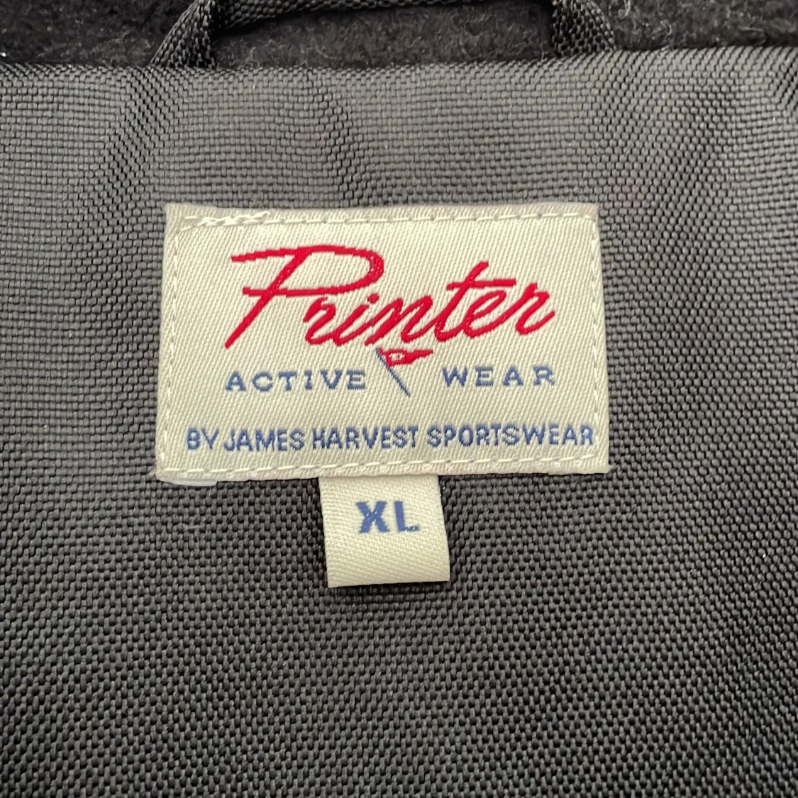 Svart vindjacka från Printer Active Wear i storlek XL. Jackan har huva med grått foder, flera fickor med dragkedja och knappar samt en snygg logga på bröstet. Perfekt för kyliga dagar och har en sportig look med praktiska detaljer.