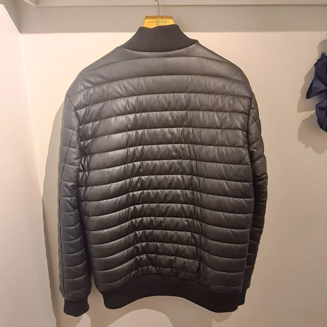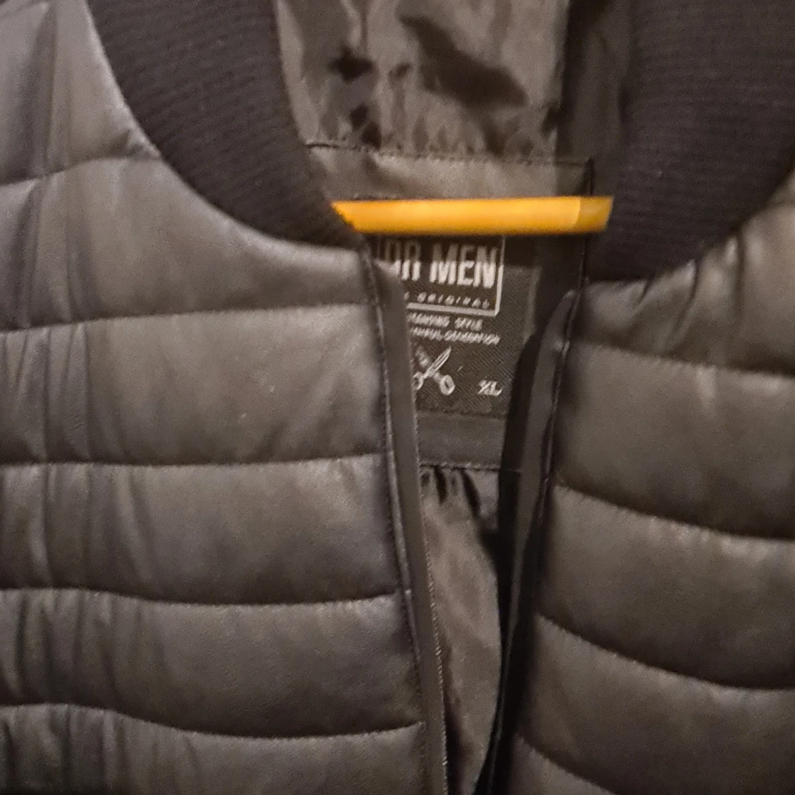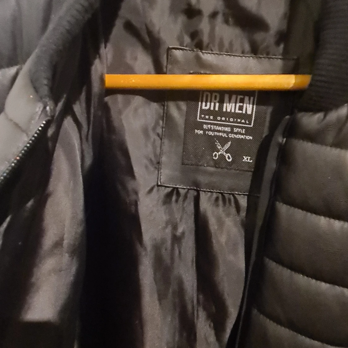 Snygg svart quiltad bomberjacka från DR MEN i storlek XL. Jackan har horisontella sömmar, ribbade muddar och krage samt två fickor framtill. Materialet är syntet och ger en clean, modern look. Perfekt för dig som vill ha en stilren jacka med edge.