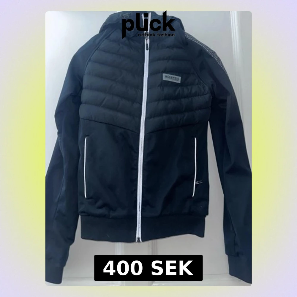 Säljer en svart pufferjacka från McKenzie i storlek XS. Jackan har huva, vita detaljer vid dragkedja och fickor samt quiltad framsida. Tillverkad i polyester och har långa ärmar med diskreta reflexdetaljer på axeln. Perfekt för dig som vill ha en sportig och clean look.
