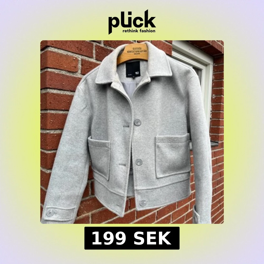 Snygg ljusgrå jacka i ullblandning från 157. Jackan har stora framfickor, klassisk krage och knäppning med tre knappar framtill. Croppad modell med lång ärm och stilren design, perfekt för kyligare dagar.