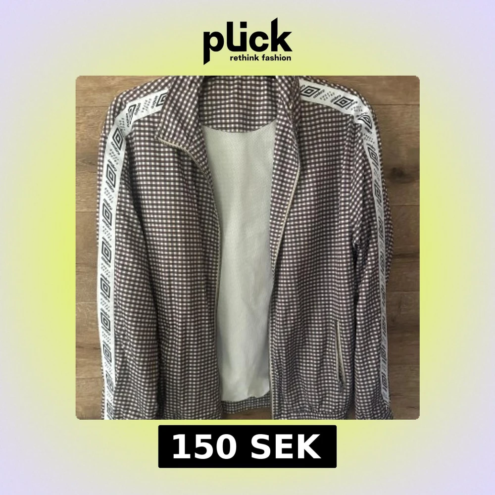 Snygg rutig vindjacka i brunt och vitt från Sweet Sktbs x Umbro. Jackan har dragkedja, långa ärmar med logoband längs axlarna och krage. Perfekt för dig som gillar streetstyle och sportig vibe. Materialet känns lätt och andas.