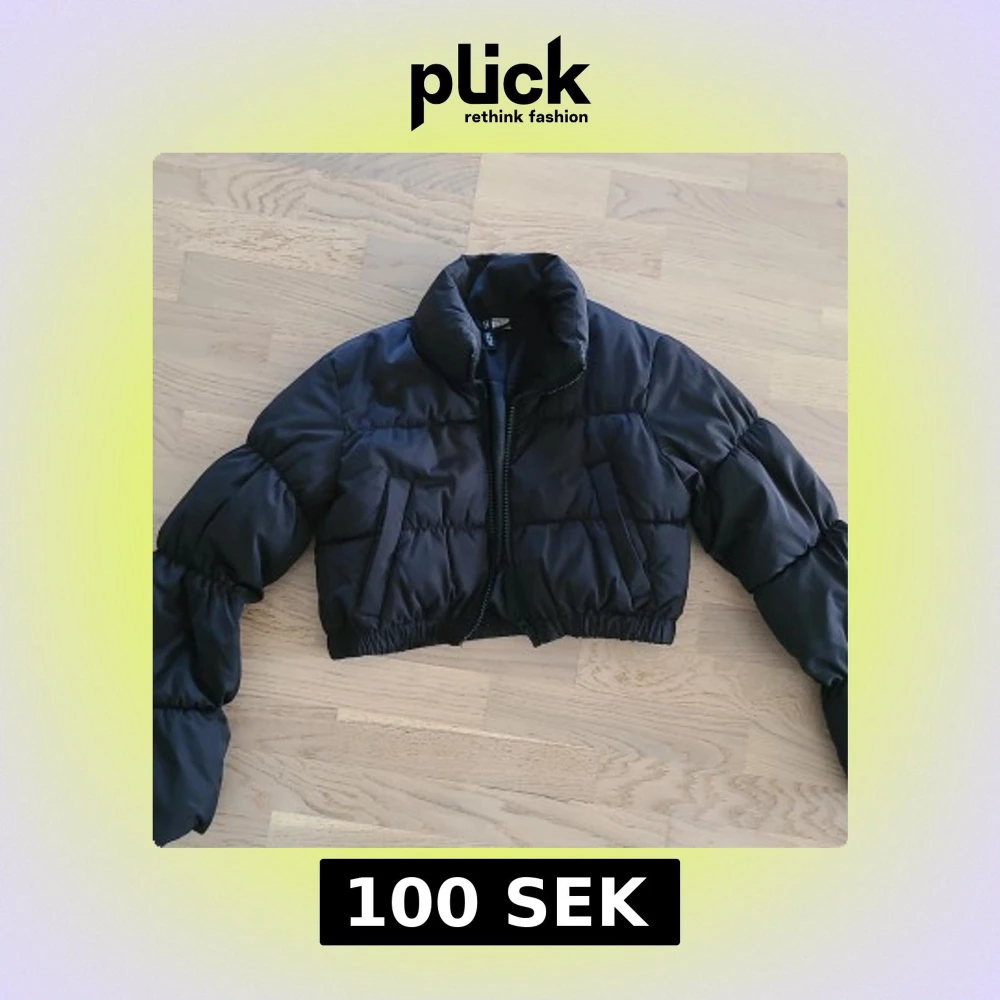 Svart croppad pufferjacka från Divided by H&M i storlek XS. Jackan har hög krage, dragkedja framtill och två snedställda fickor. Puffiga ärmar och elastisk nederkant ger en trendig och cool look. Perfekt för kyliga dagar när du vill sticka ut.