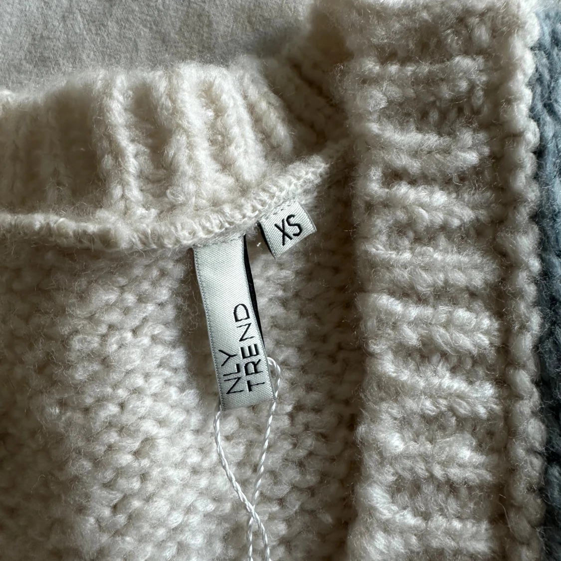 Supermysig stickad väst från NLY Trend i storlek XS. Västen har breda ränder i vitt, ljusblått och olivgrönt, samt en djup v-ringning och ribbade kanter. Perfekt att slänga över en skjorta eller t-shirt för en trendig lager-på-lager-look.