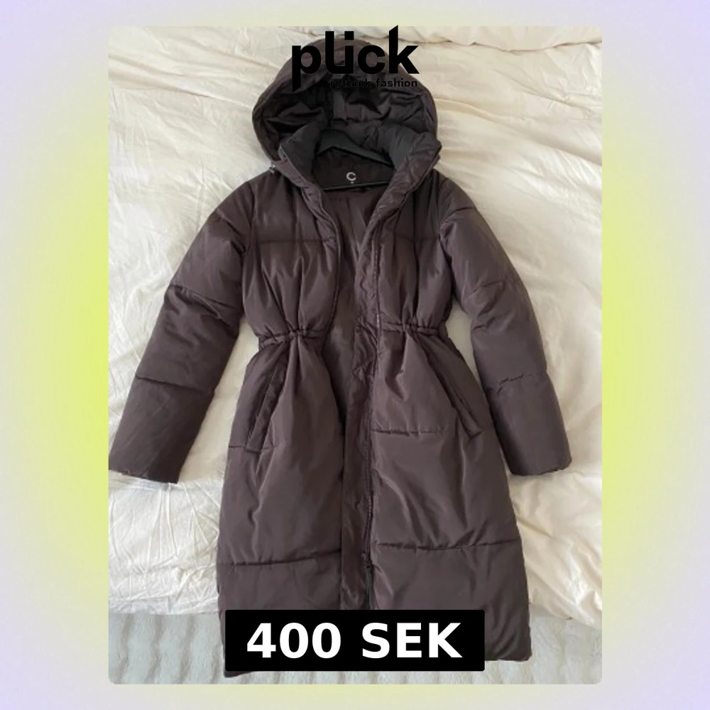 Säljer en brun lång pufferjacka från C i storlek XS. Jackan har en stor huva, dragkedja framtill och snyggt rynkad midja för en schysst siluett. Perfekt för kalla dagar och har två praktiska fickor på sidorna.