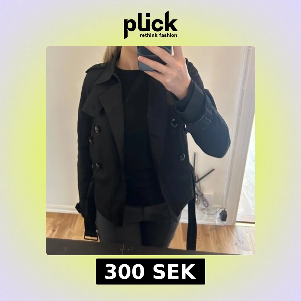 Säljer en svart trenchcoat från Drykorn med dubbelknäppning och bälte i midjan. Jackan har långa ärmar, klassisk krage och axelklaffar. Öppen för prisförslag!