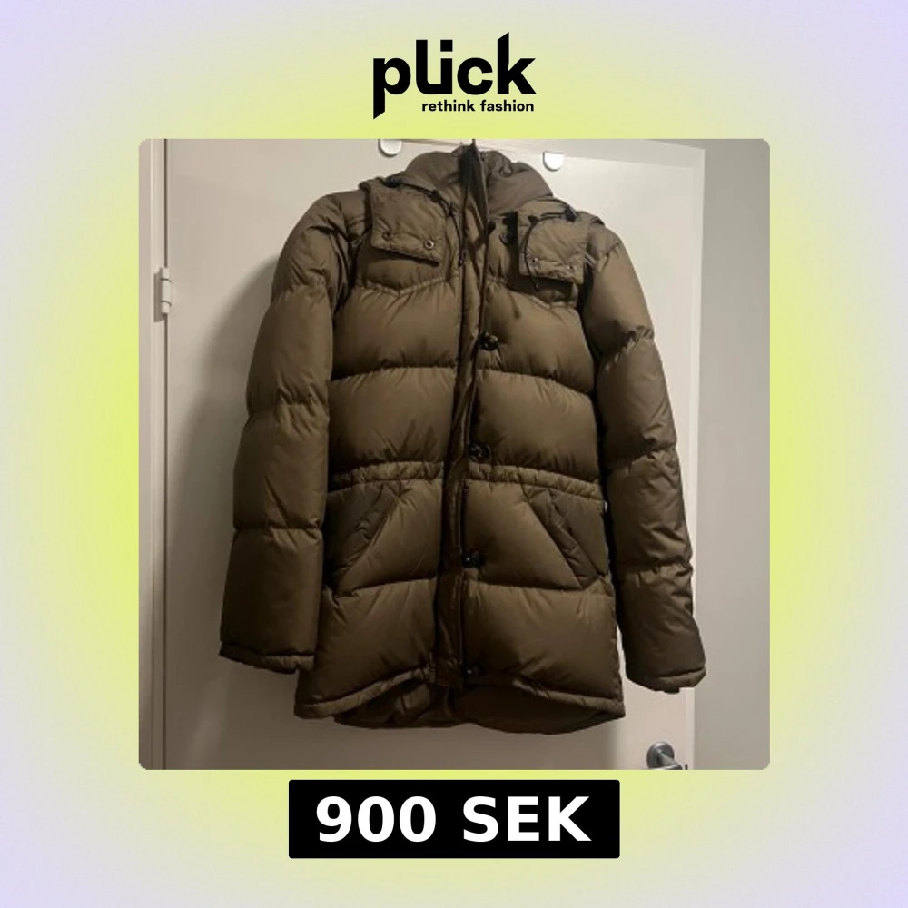 Säljer en brun dunjacka från Boomerang i storlek XS. Jackan har huva med snörning, två fickor, samt broderad logga på ärmen. Puffad design och klassisk look, perfekt för kalla dagar.