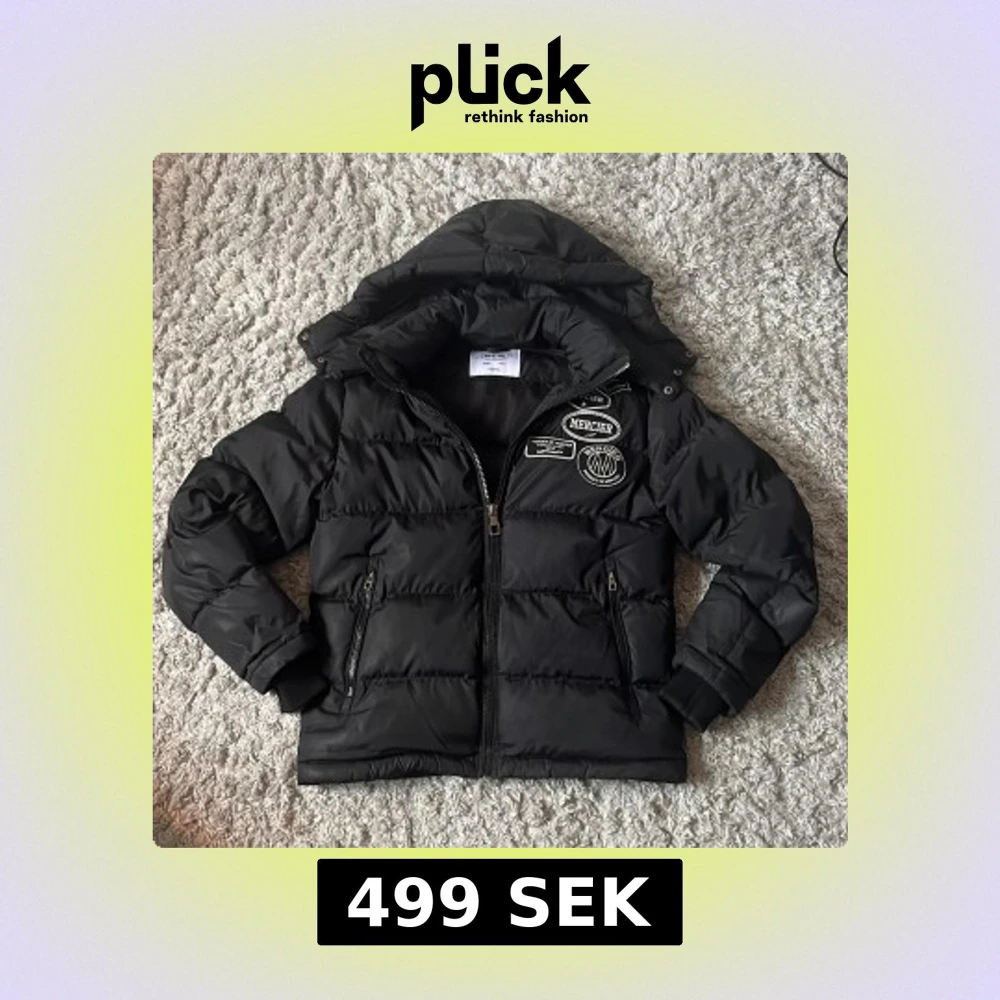 Svart pufferjacka från Mercier med huva och coola patches på bröstet. Jackan har dragkedja framtill, två fickor med dragkedja och ribbade muddar vid ärmsluten. Perfekt för kalla dagar och riktigt snygg streetstil.