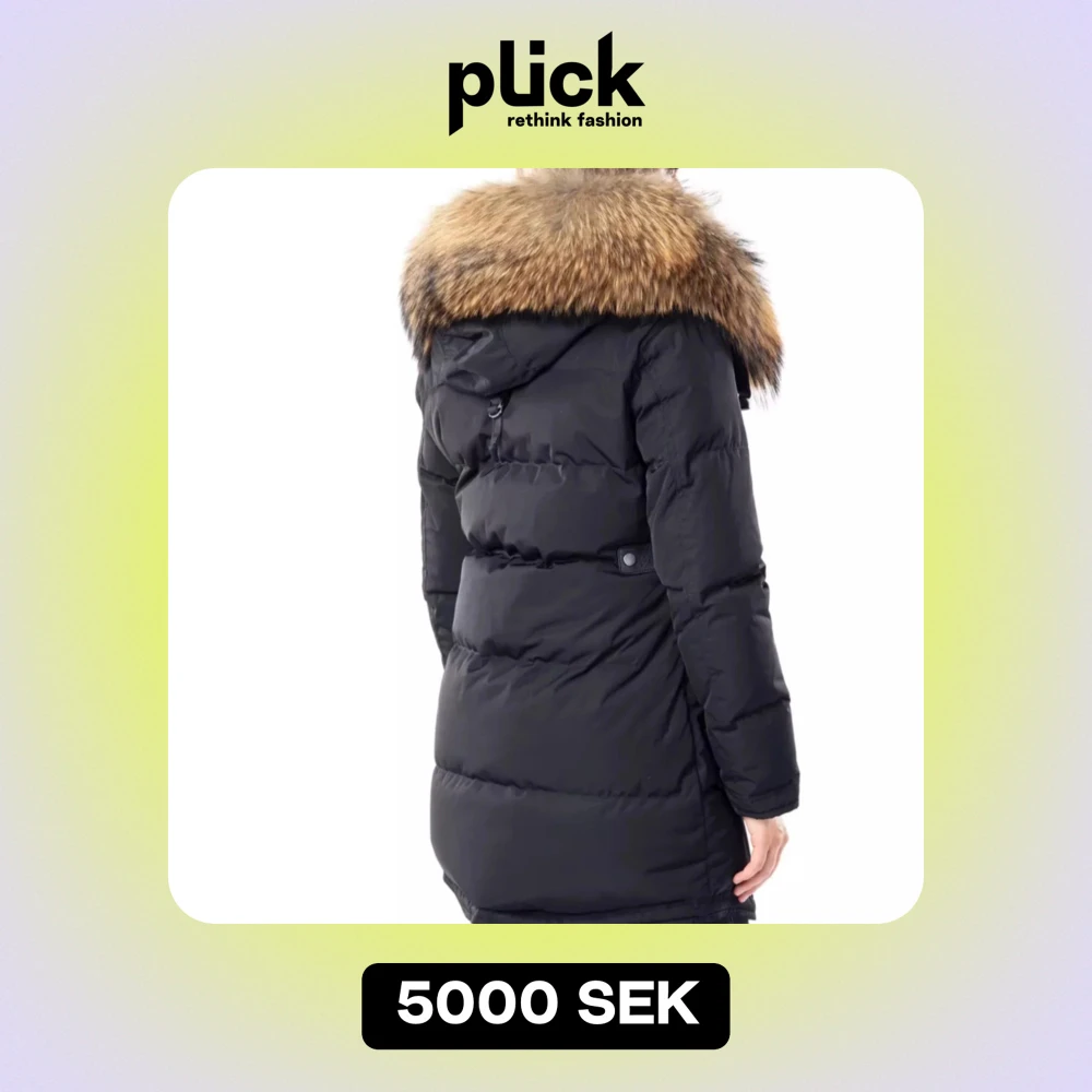 Säljer en snygg svart dunjacka med stor, fluffig päls runt huvan. Jackan har en dragkedja framtill och praktiska fickor. Perfekt för kalla vinterdagar när du vill hålla dig varm och stilren. Passar både till vardags och lite finare tillfällen.