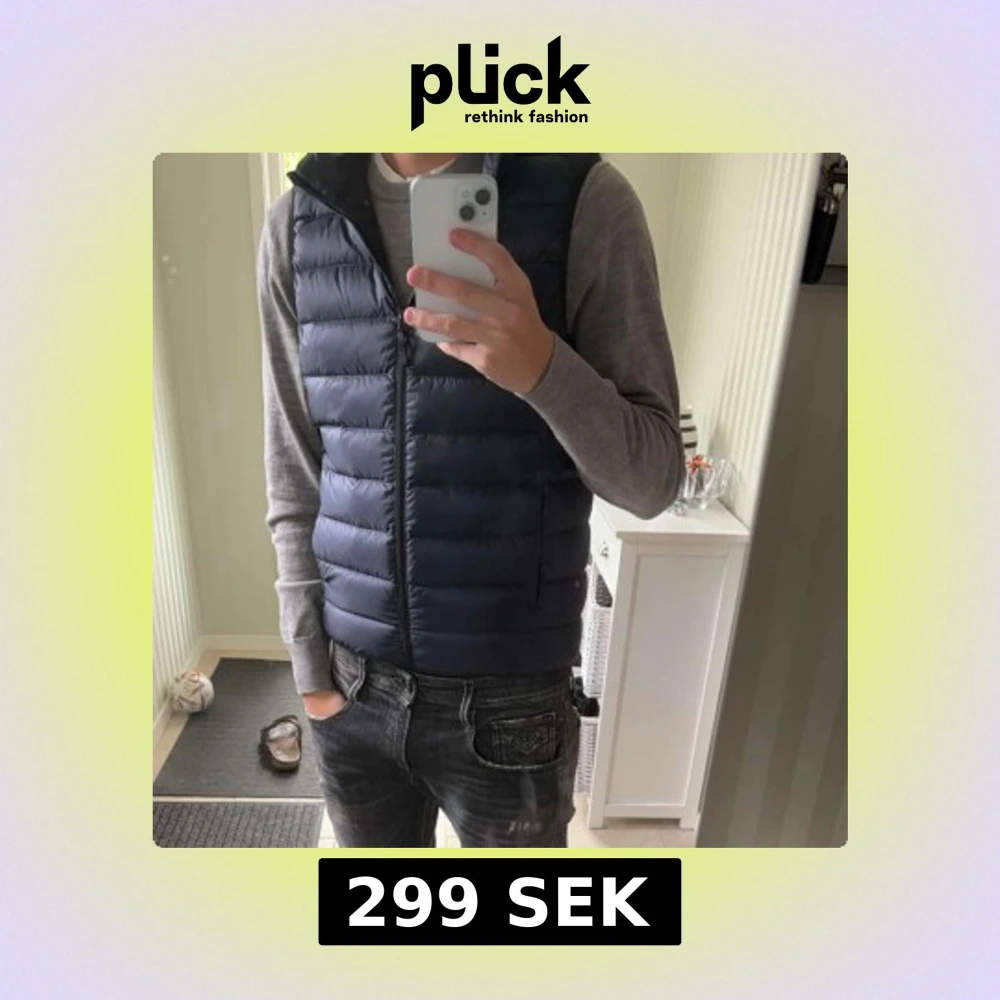 Snygg mörkblå dunväst med dragkedja framtill. Västen har en klassisk passform och är perfekt att bära över en tröja. Enkel och stilren design utan synliga loggor eller mönster.