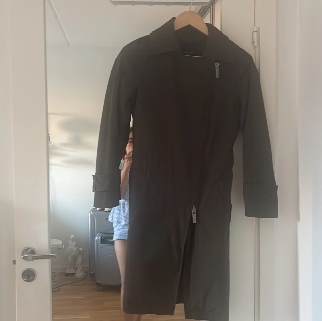 Snygg mörkgrön / militärgrön trenchcoat från Sand Copenhagen med klassisk krage, långa ärmar och cool asymmetrisk dragkedja framtill. Jackan har stilrena detaljer vid ärmsluten och är perfekt för dig som gillar minimalistisk design. Materialet känns slätt och lätt.