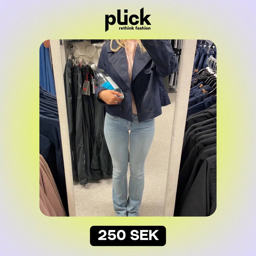 Super fin trenchcoat i marinblå i strl 164 passar xs/s. Använd en gång