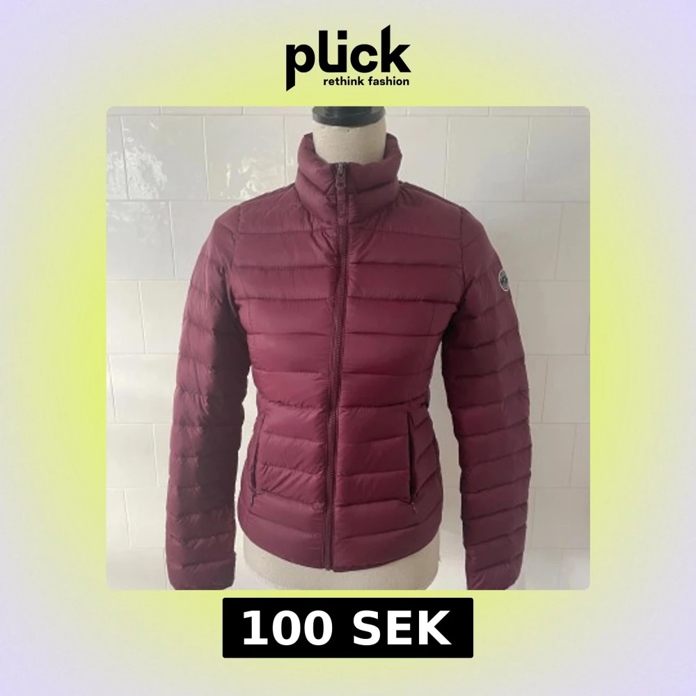 Säljer en snygg vinröd dunjacka från Abercrombie & Fitch. Jackan har en dragkedja framtill och är långärmad med en hög krage. Perfekt för kyliga dagar med sin quiltade design och varma fyllning. Fick ett lite hål på insidan av jackärmen som syddes. Se på bilder. Ej märkbart vid användning då det är nära sömn insidan av arm.