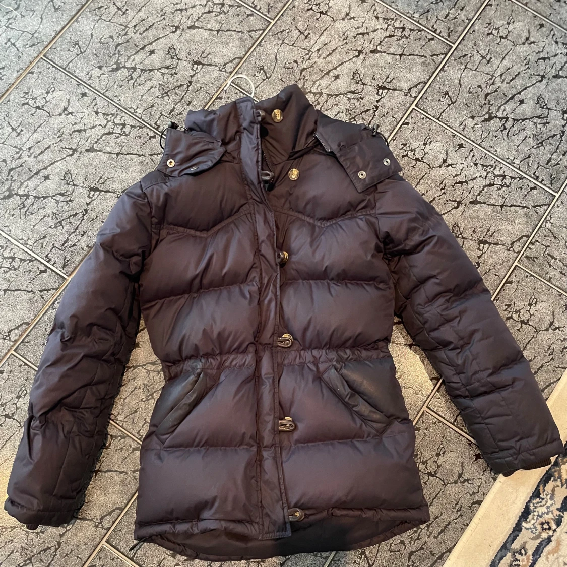 Säljer en marinblå dunjacka från Boomerang i storlek XS. Jackan har en hög krage, knappar framtill och två snedställda fickor. Perfekt för kalla dagar med sin vadderade och puffiga design. Klassisk och stilren modell som håller dig varm hela vintern.