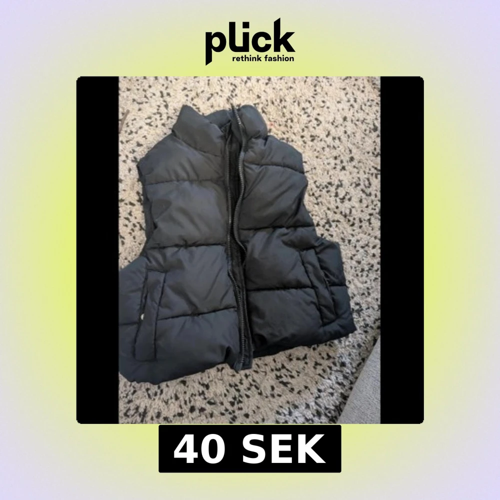 Snygg svart väst ej äkta dun i med hög krage och praktiska fickor framtill. Västen har en quiltad design och stängs med dragkedja. Perfekt att slänga över en hoodie för extra värme under kyliga dagar.