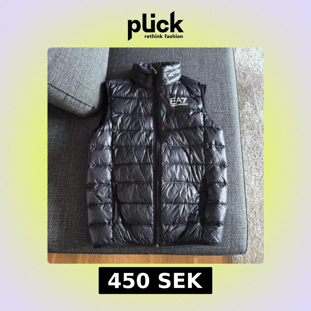 Snygg svart dunväst från EA7 Emporio Armani med quiltad design och hög krage. Perfekt för lager-på-lager och ger en sportig vibe. Materialet är glansigt och lätt, vilket gör den enkel att bära. Inga defekter utan är nästan i nyskick. Säljer då den är för liten för mig