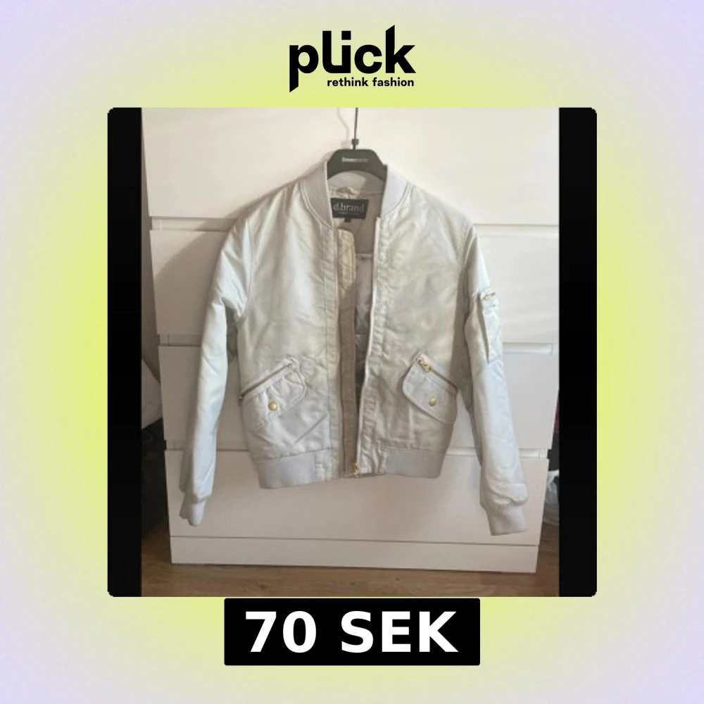 Snygg vit bomberjacka från d.brand med guldiga dragkedjor och detaljer. Jackan har ribbade muddar vid ärmslut och midja, samt flera fickor med dragkedja och tryckknappar. Perfekt för dig som vill ha en clean och stilren look.