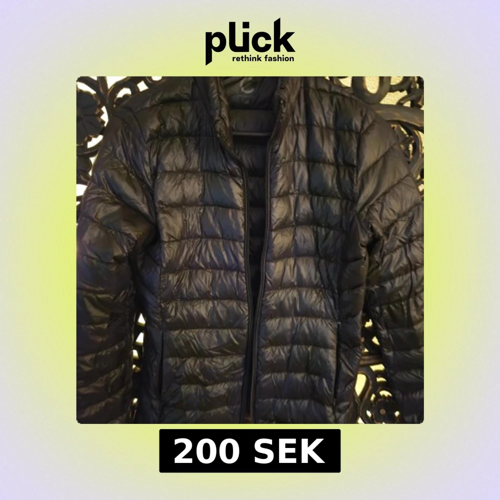 Säljer en svart pufferjacka med quiltad design och hel dragkedja framtill. Jackan har lång ärm och en clean, sportig look som passar perfekt när det är kallt ute. Materialet är glansigt och lätt, vilket gör den smidig att bära.