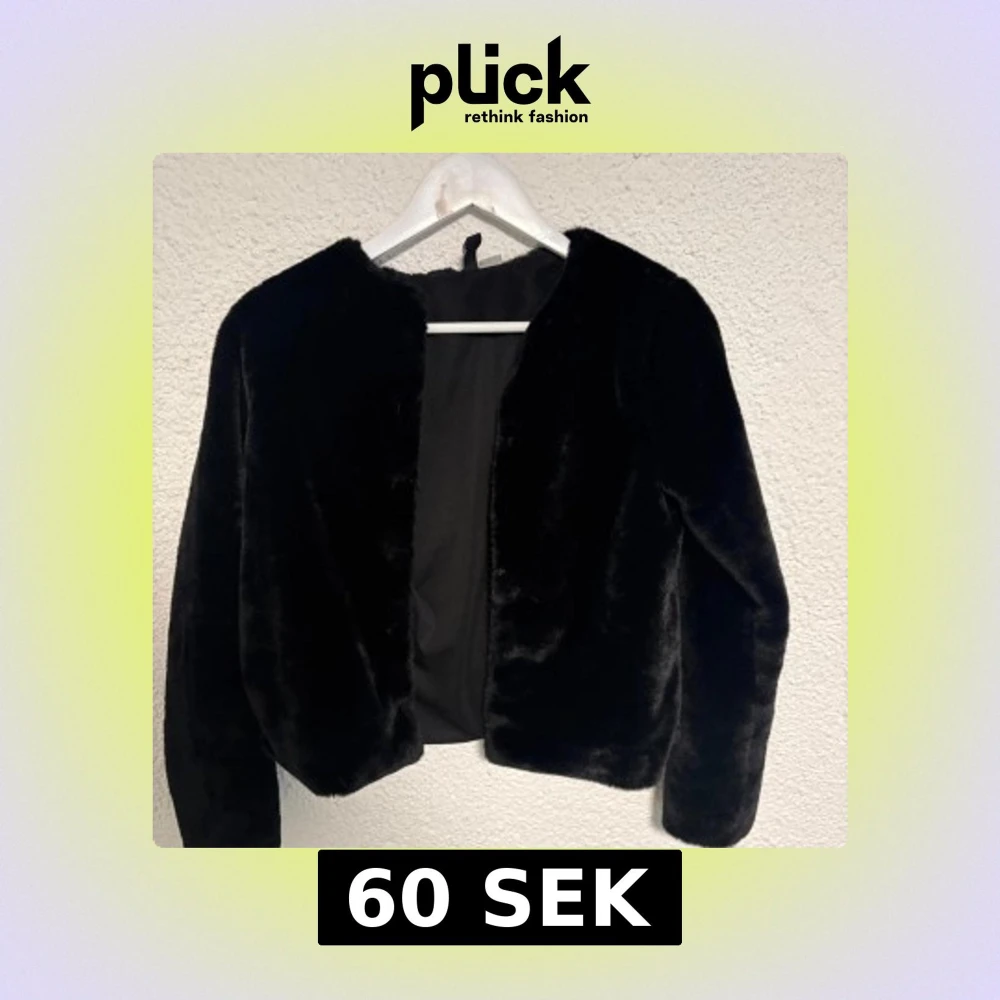 Mjuk och fluffig svart pälsjacka från H&M Divided i storlek XS. Jackan har en rak, kortare passform med långa ärmar och är helsvart utan synliga knappar eller dragkedja. Perfekt för dig som vill ha en stilren och trendig look.