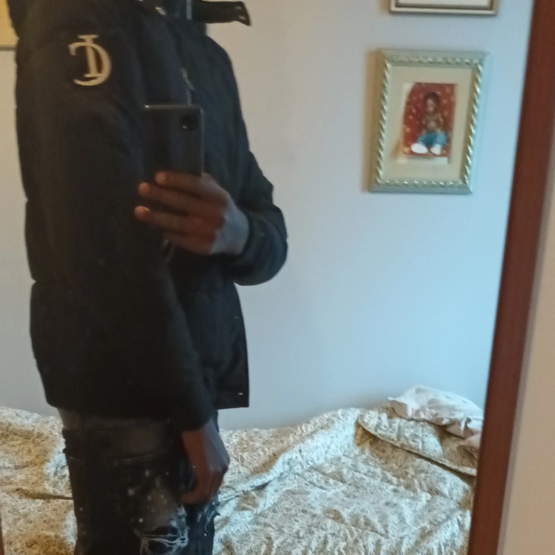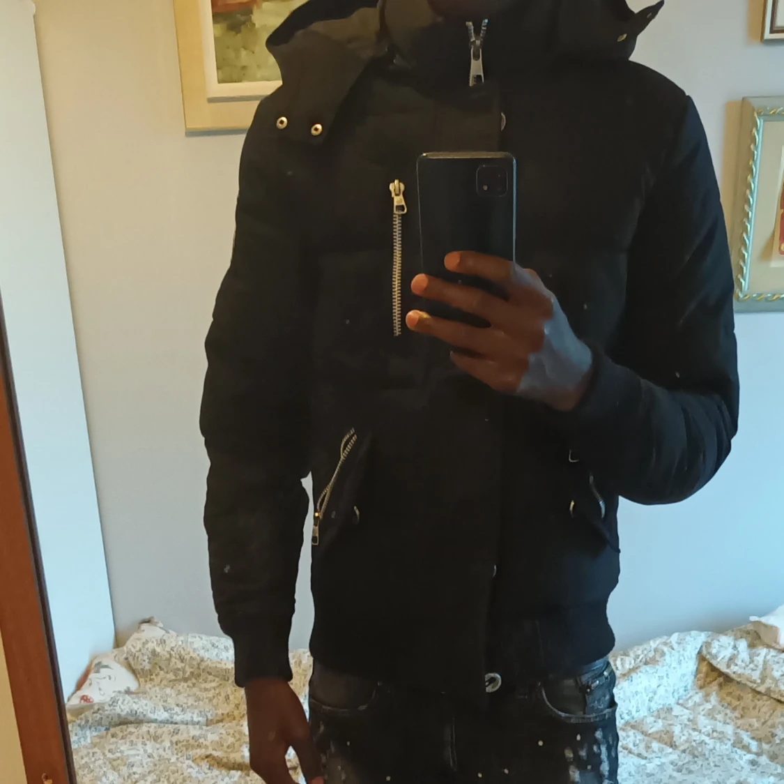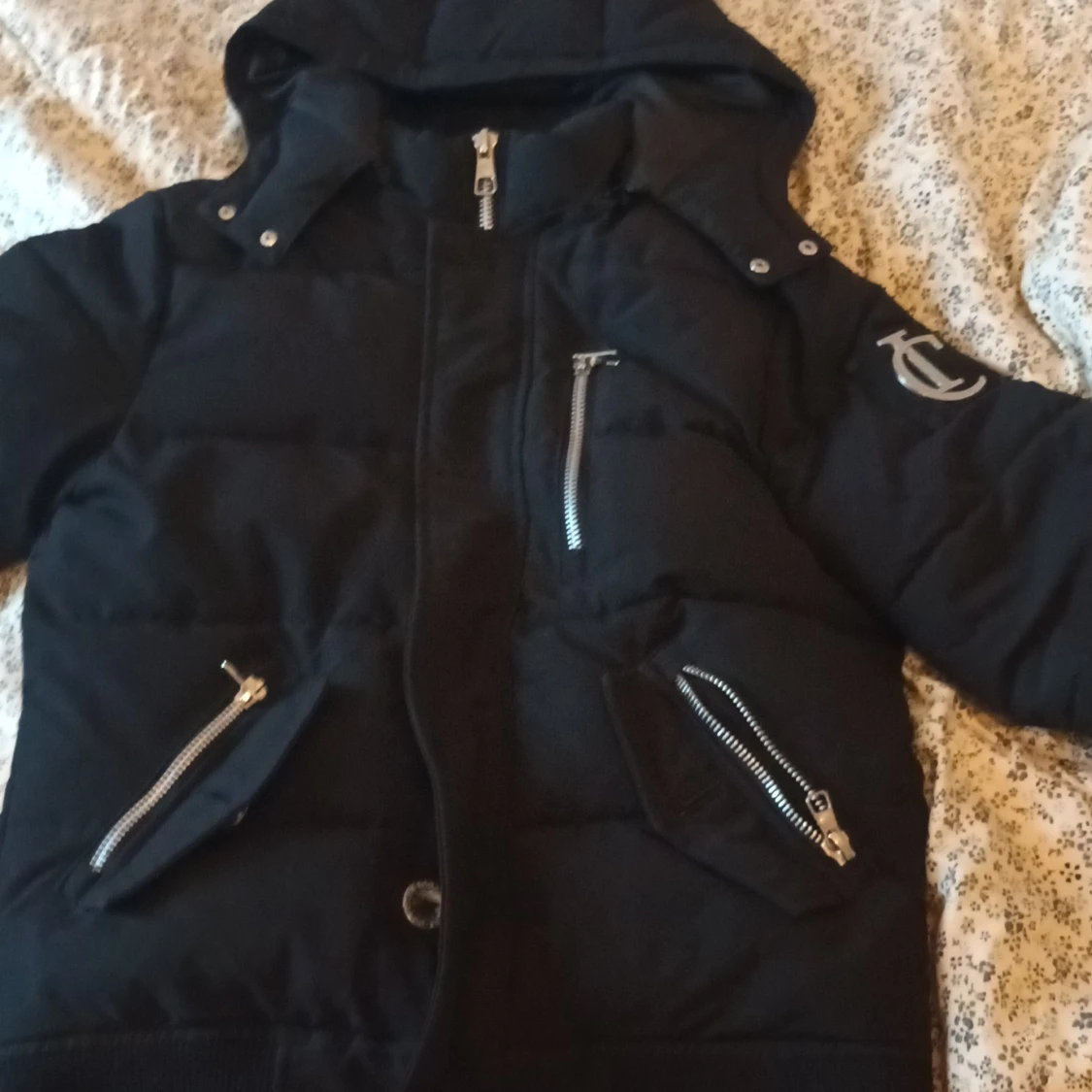 Svart pufferjacka från TD med huva, stora silverfärgade dragkedjor och knappar framtill. Jackan har en broderad TD-logga på ärmen och flera fickor med dragkedja. Snygg och varm modell med normal passform, perfekt för kalla dagar.