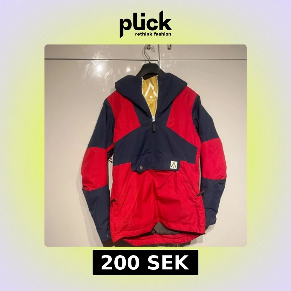 Snygg och funktionell jacka från Wearcolour i rött och marinblått. Jackan har en dragkedja framtill och en praktisk huva. Perfekt för utomhusaktiviteter med sin sportiga design och slitstarka material. Används 1 gång då jag trillade och bröt mitt ben så den blev för liten