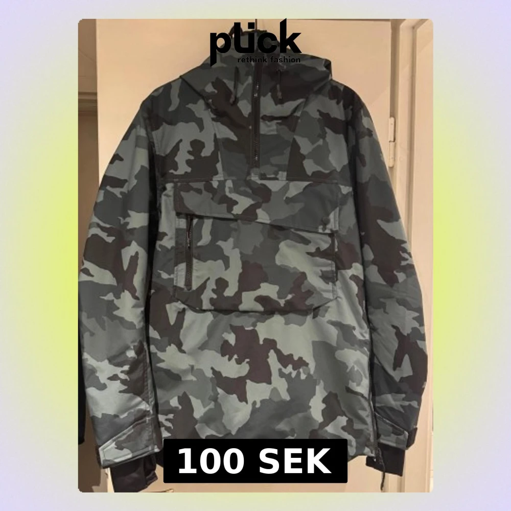 Säljer en snygg vinterjacka från Warp i storlek XS stor i storleken med grönt och svart camouflage-mönster. Jackan har stor huva perfekt för när man åker skidor och hjälmen får väldigt bra plats med luvan på, med snörning, stor ficka framtill med dragkedja, samt quiltat foder på insidan. Perfekt för dig som gillar streetwear och vill sticka ut.