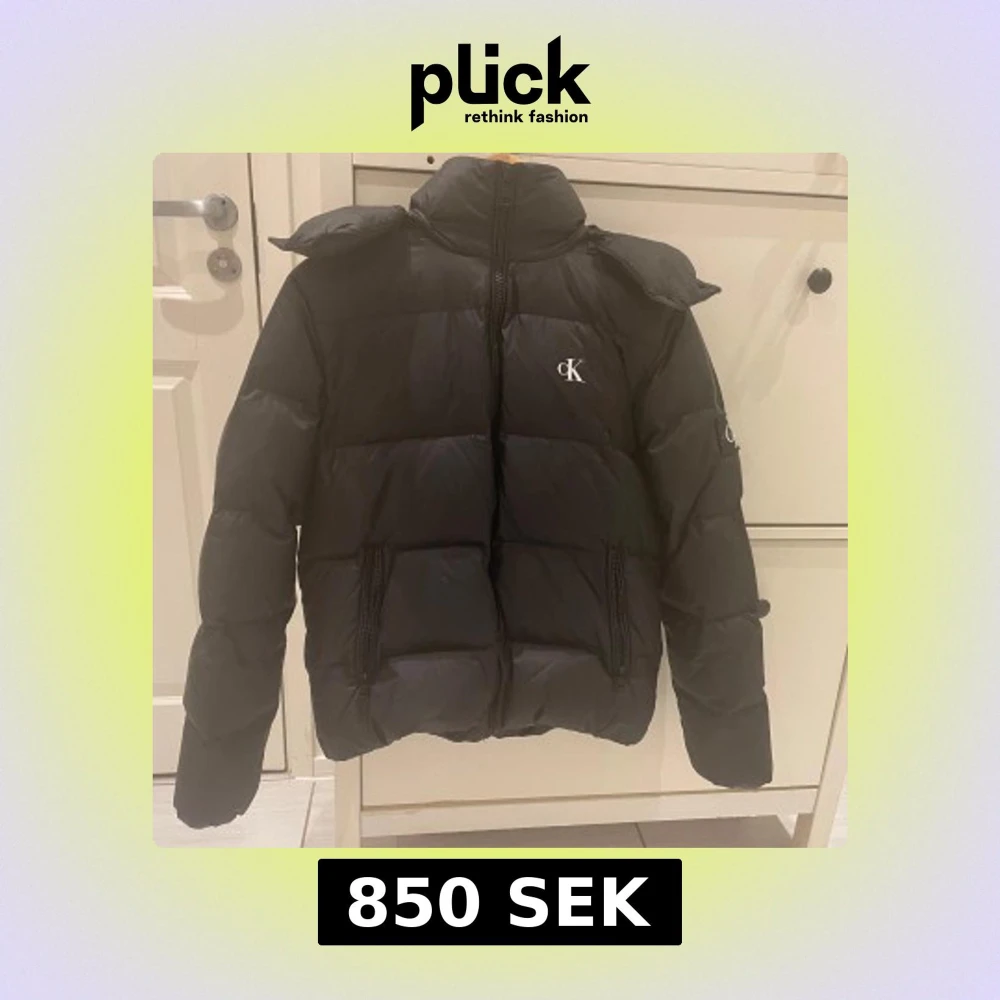 Säljer en svart pufferjacka från Calvin Klein Jeans med huva och dragkedja. Jackan har två fickor med dragkedja och diskret CK-logga på bröstet. Perfekt för kyliga dagar.