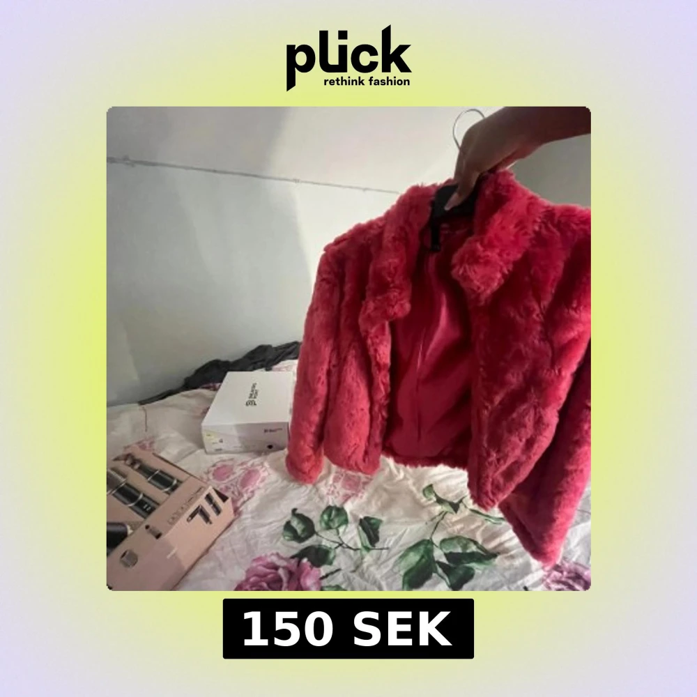 Säljer en fluffig och trendig rosa pälsjacka med klassisk krage. Jackan är kortare i modellen och har en riktigt mjuk och gosig känsla. Perfekt för dig som vill sticka ut och addera färg till din outfit.