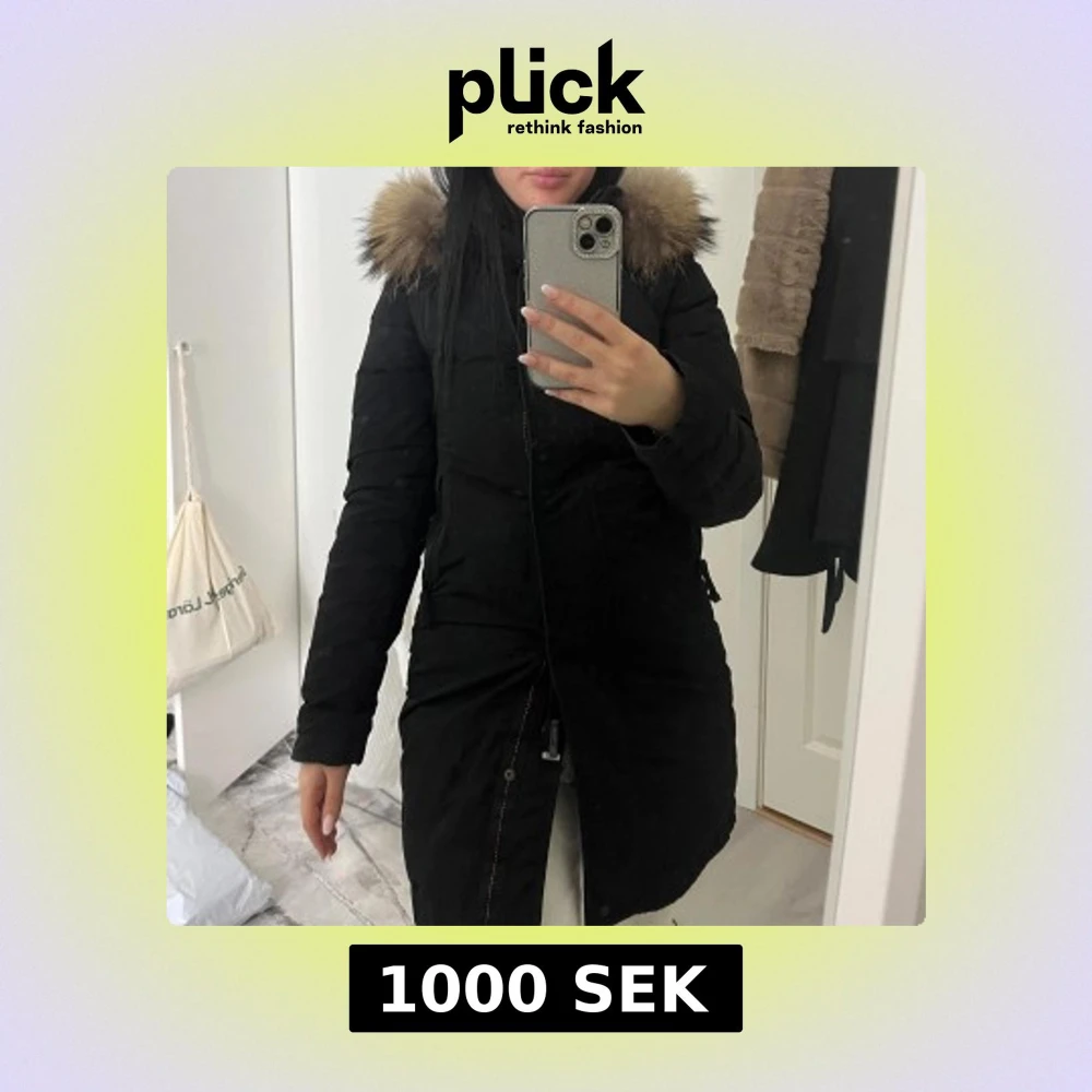 Snygg svart parkajacka från PJS med en mysig pälsdetalj på huvan. Jackan har en praktisk dragkedja och knappar framtill. Perfekt för kalla dagar. Dragkedjan är sönder men går att knäppa. Storlek xxs men som en xs