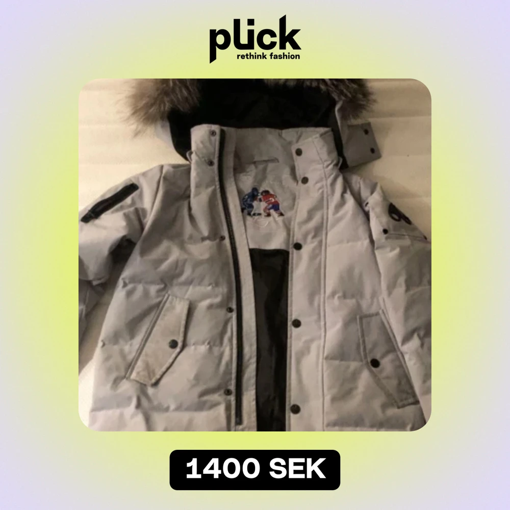 En grå Moose knuckles jacka som har blivit för liten på min lillebror och har nu valt sälja den ganska billigt eftersom att det är en barn modell.