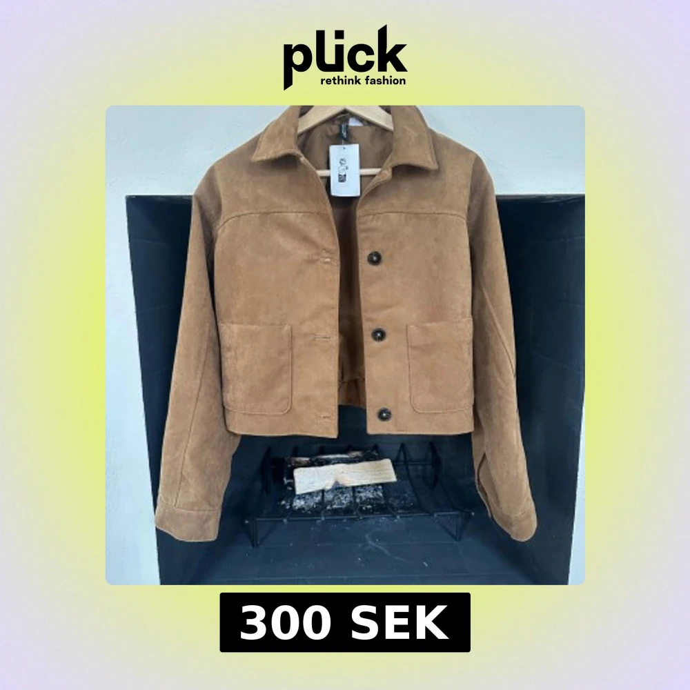 Snygg brun mockajacka med knappar framtill och två stora fickor. Jackan har en klassisk krage och är croppad i modellen. Perfekt för höst och vår.