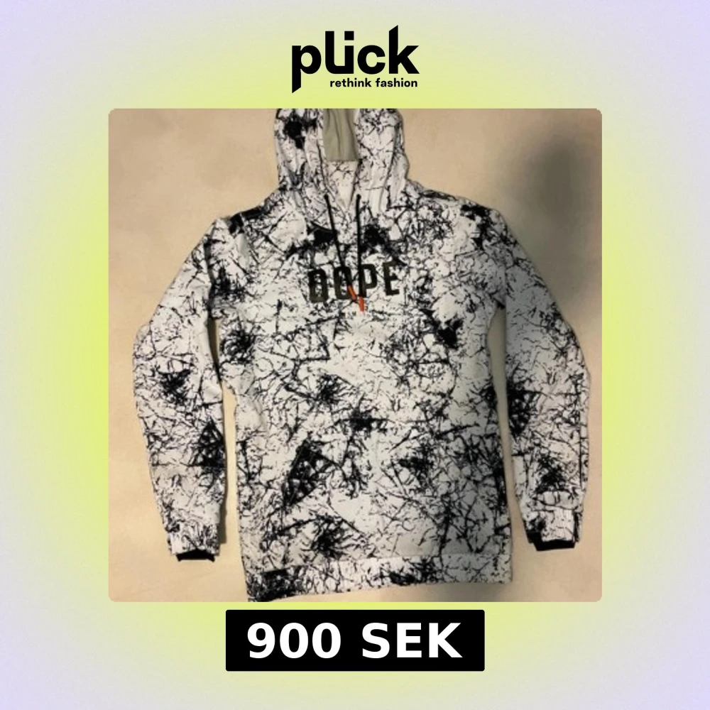 Säljer en cool vit och svart hoodie från Dope med ett unikt mönster. Hoodien har en justerbar huva och långa ärmar. Perfekt nu inför skid säsongen. Års modell 2021 nypris: 1399. Finns lite fläckar på den men går säkert bort i tvätten!