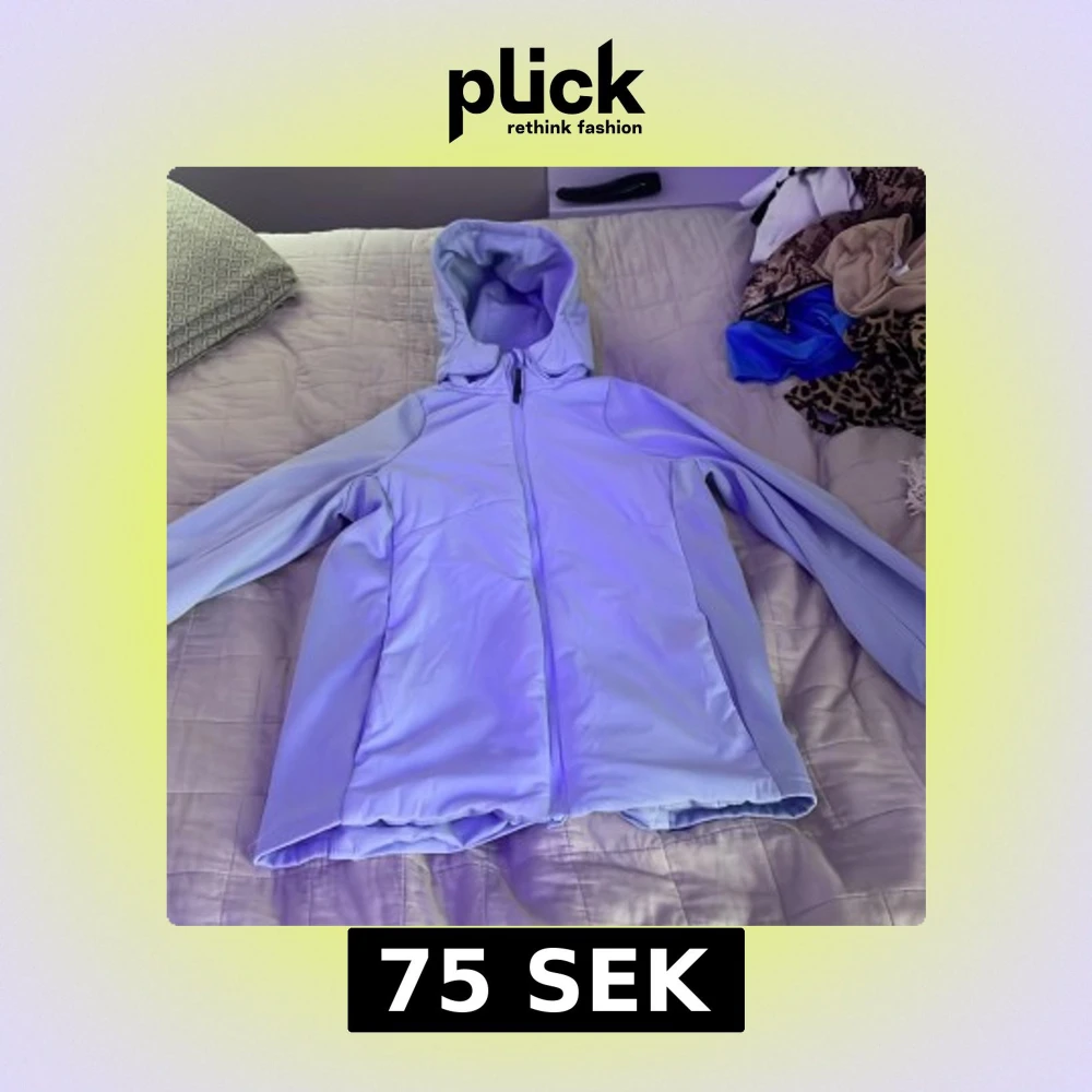 Snygg ljusblå vindjacka med hel dragkedja framtill och praktisk huva. Jackan har långa ärmar med tumhål och släta fickor på sidorna. Materialet är mjukt och känns som syntet, perfekt för blåsiga dagar. Enkel och stilren design som passar till många outfits.