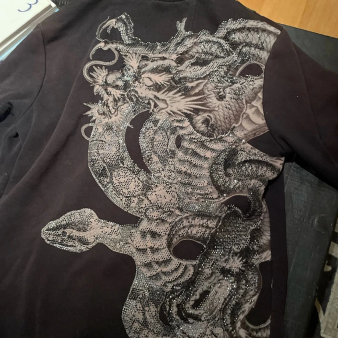 Riktigt fin kofta med tryck av en orm och pärlor på och en badge på armen