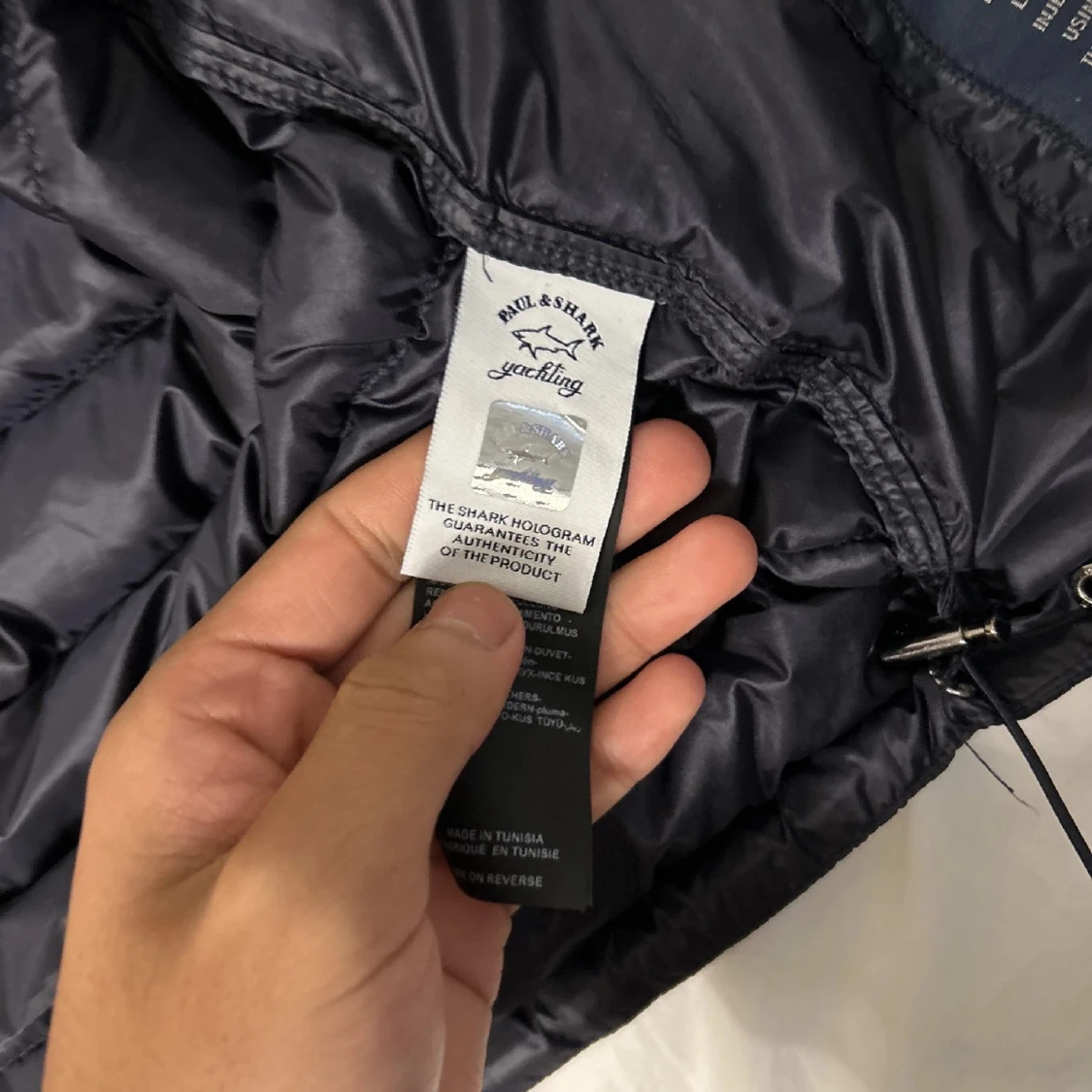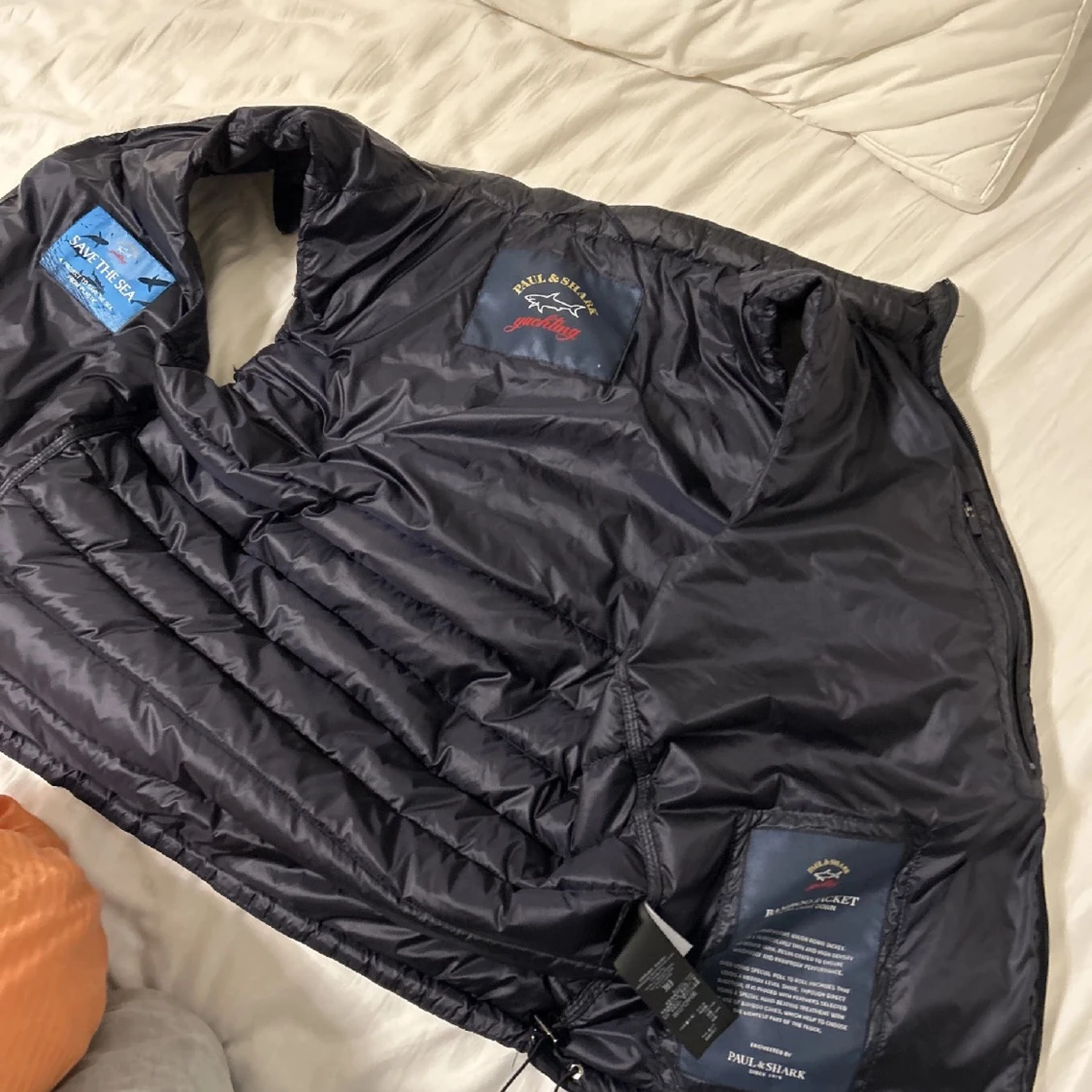 Snygg svart dunväst från Paul & Shark Yachting med quiltad design och lätt glansig finish. Västen är ultralätt och har dragkedja framtill. Märkespatch på bröstet och insidan, perfekt för lager-på-lager-stil. Tillverkad i nylon och fylld med dun. Ingen luva tyvärr