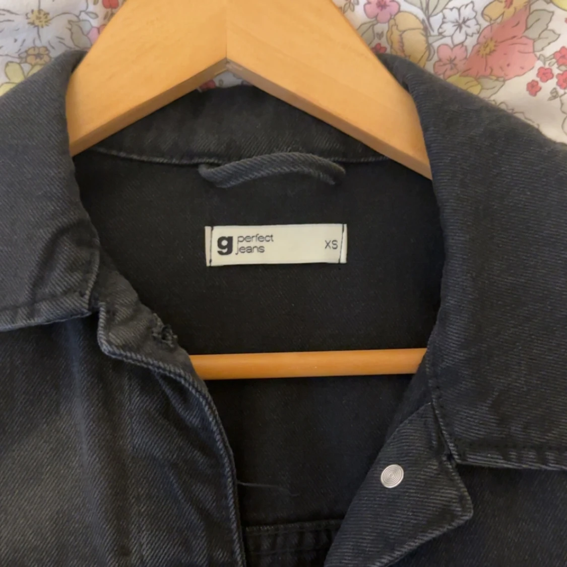 Svart jeansjacka från g perfect jeans i storlek XS. Klassisk modell med knappar framtill, två bröstfickor med lock och knapp samt långa ärmar. Snygg, enkel och passar perfekt till lager-på-lager-stil.