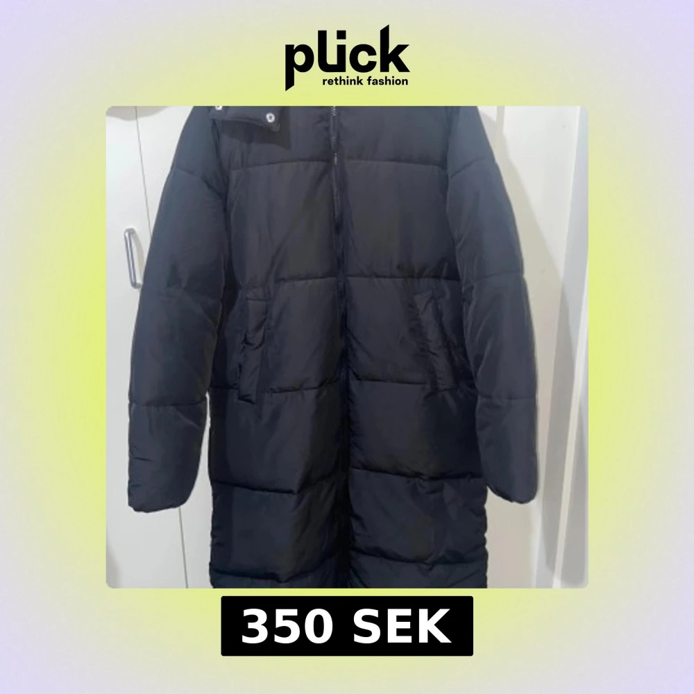 Svart lång pufferjacka från H&M Divided i storlek XS. Jackan har huva, dragkedja framtill och två sidofickor. Den är quiltad och har en clean, enkel look som passar perfekt när det är kallt ute. Är oanvänd