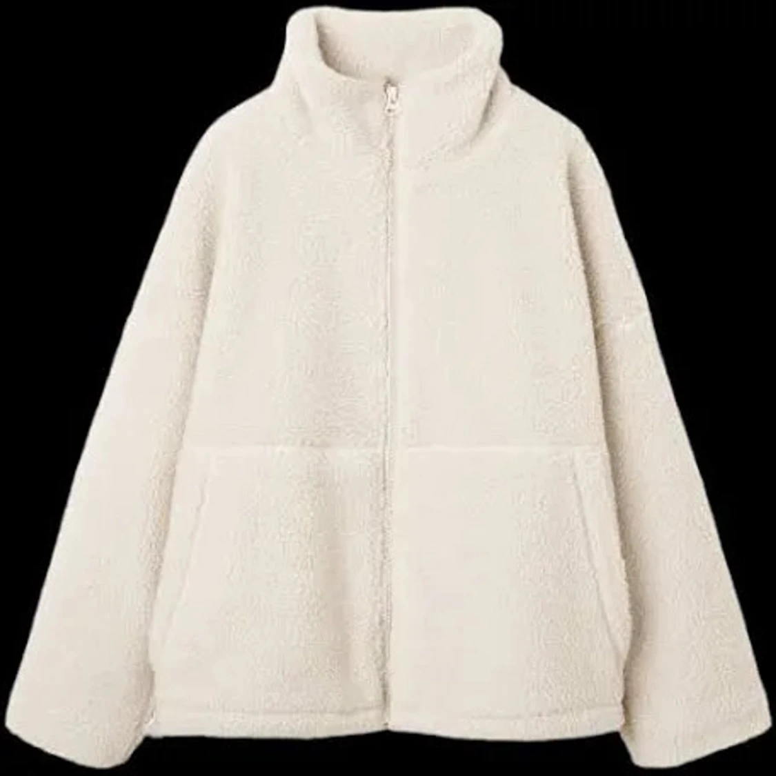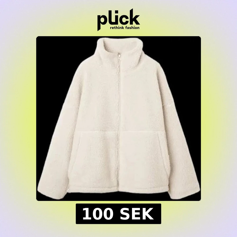 Mysig beige teddyjacka med hög krage och hel dragkedja framtill. Jackan har två stora fickor och är tillverkad i mjukt fleece-material. Perfekt för kyliga dagar när du vill vara både varm och stilren.